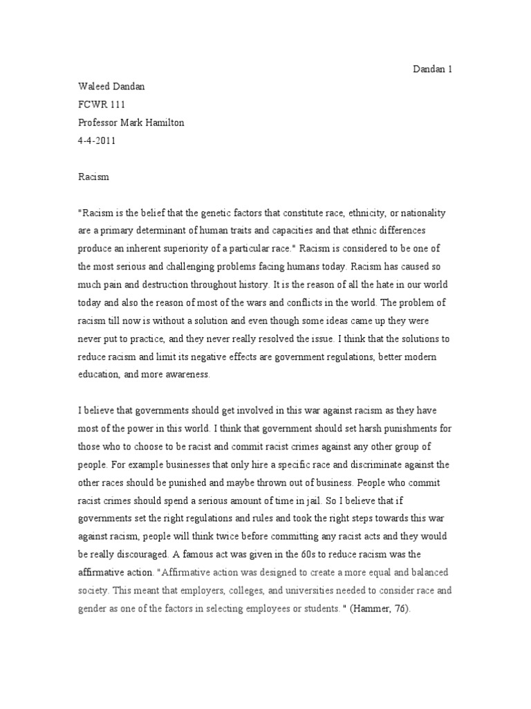In this essay, we will make an attempt to look at the problem of racism from various points of view, because it clearly shows that, despite the full confirmation of the unscientific nature of racist theories, the ideas of racism and nationalism continue to actively live in modern society. Thus, it is proposed to look at the problems of racism from several points of view, separately highlighting the scope and manifestations of racism:. In the International Convention on the Elimination of All Forms of Racial Discrimination, racism is designated as any distinction, exclusion, an essay on racism, restriction or preference based on race, color, descent, national or ethnic origin, having the purpose or effect of destroying or impairing the recognition, use or exercise on an equal footing of human rights and fundamental freedoms in the political, economic, an essay on racism, social, cultural or any other areas of public life.